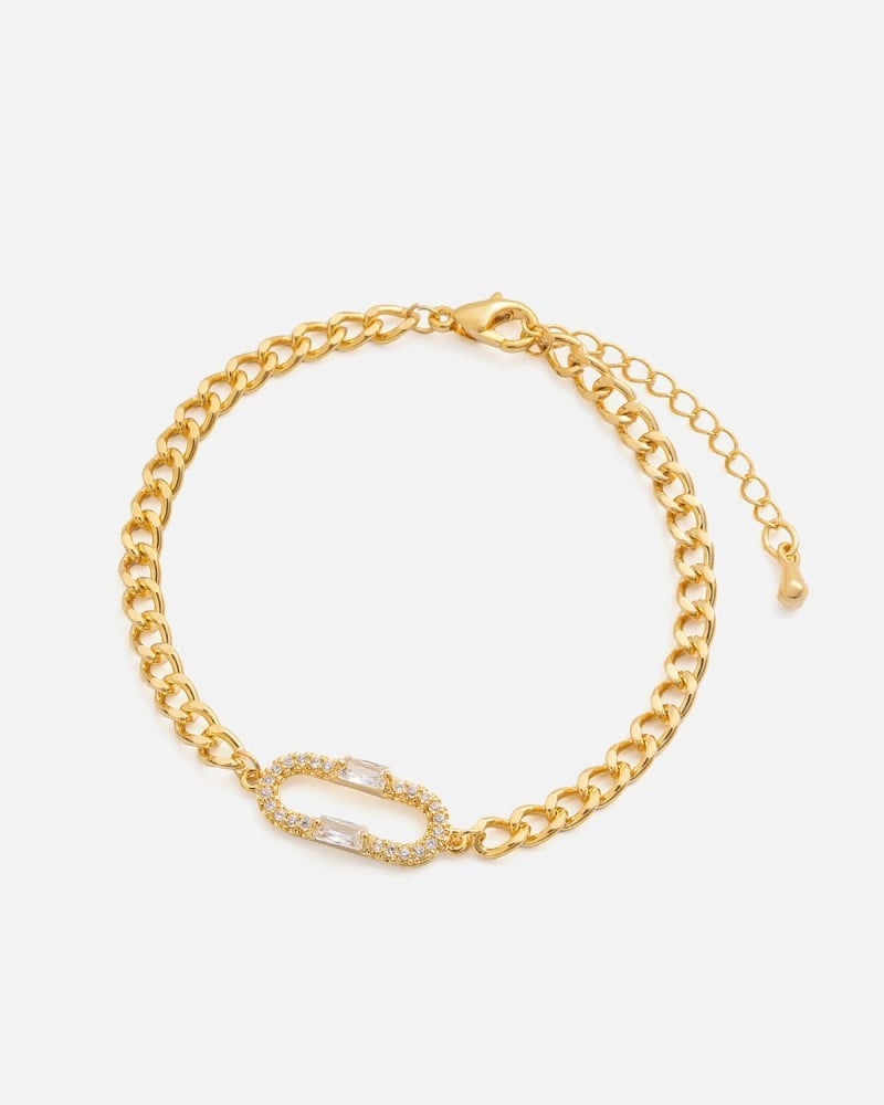 اسوارة نسائية بتصميم ملفت باللون الذهبي ، اسوارة تتزين بحلية مفرغة في المنتصف مرصعة بفصوص الزركون اللامعة، اضيفي لمسه أنثويه راقيه الى طلتك مع هذا السوار، يمكنك ارتداء الاسوارة في كل الأوقات .
