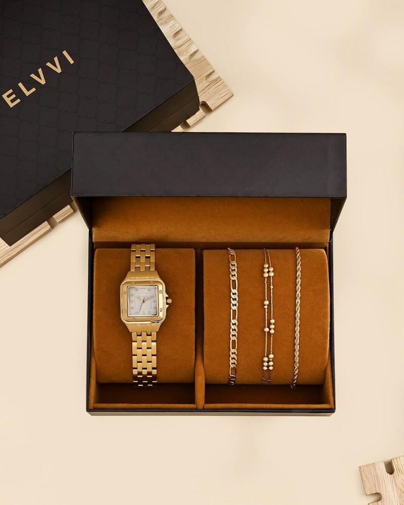 • محتويا ت الطقم: اساور نسائية و ساعة نسائية